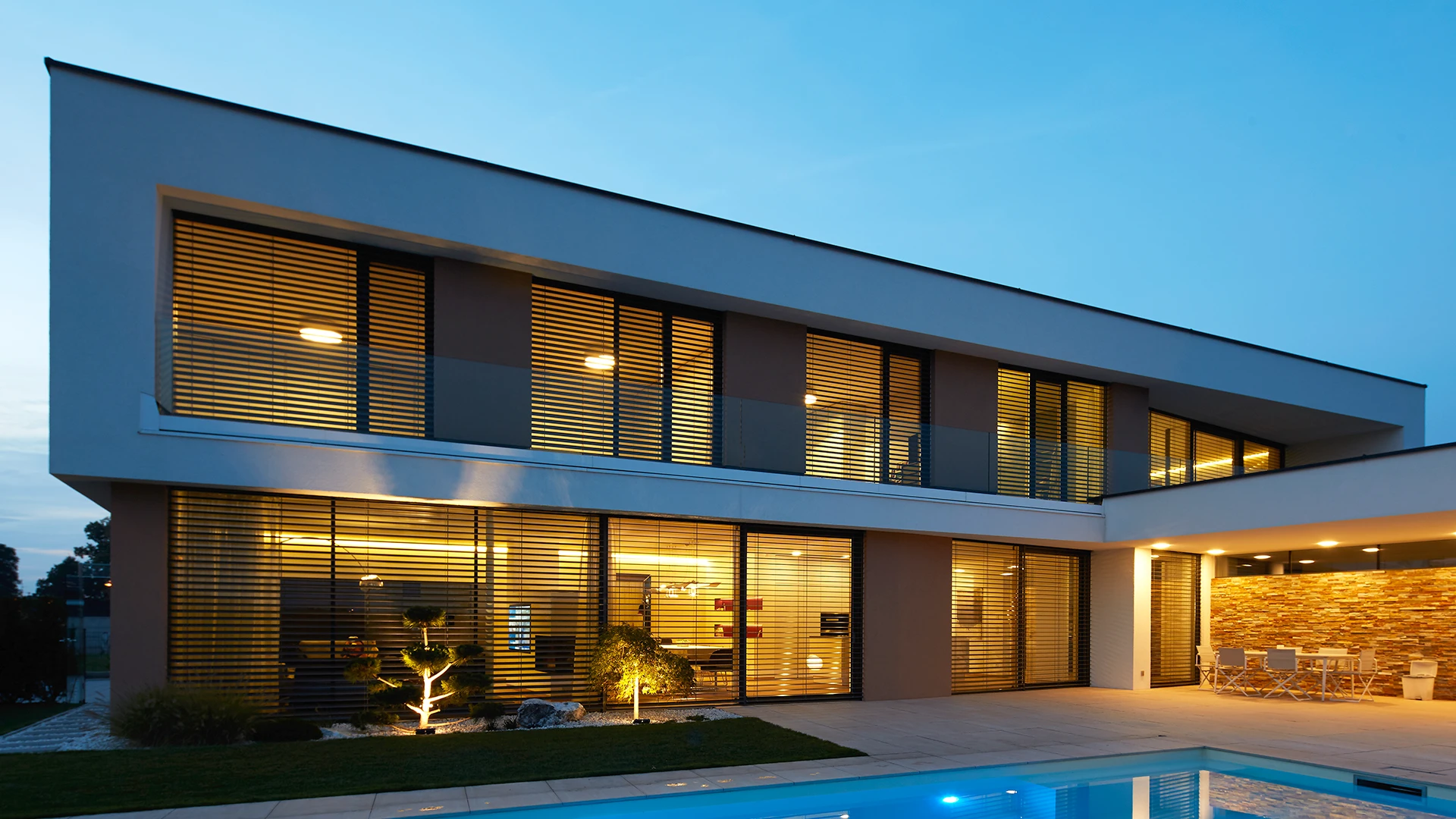 Raffstore von KAUN ermöglichen präzise Lichtlenkung und wirkungsvollen Sonnenschutz. Mit hochwertigen Systemen der Marken NEWO, Schlotterer und Valetta, entstehen langlebige Lösungen, die Technik, Architektur und Wohnkomfort verbinden.